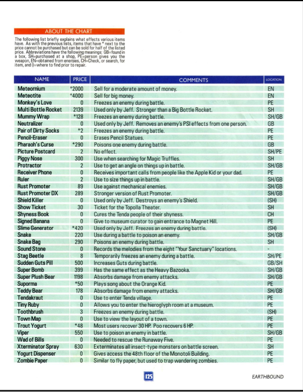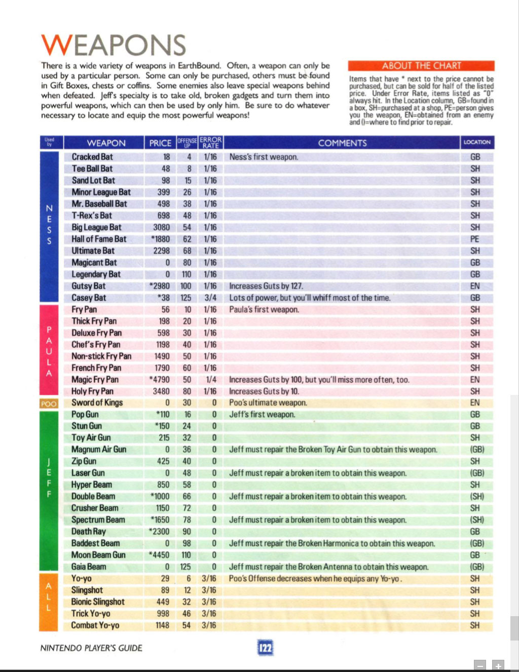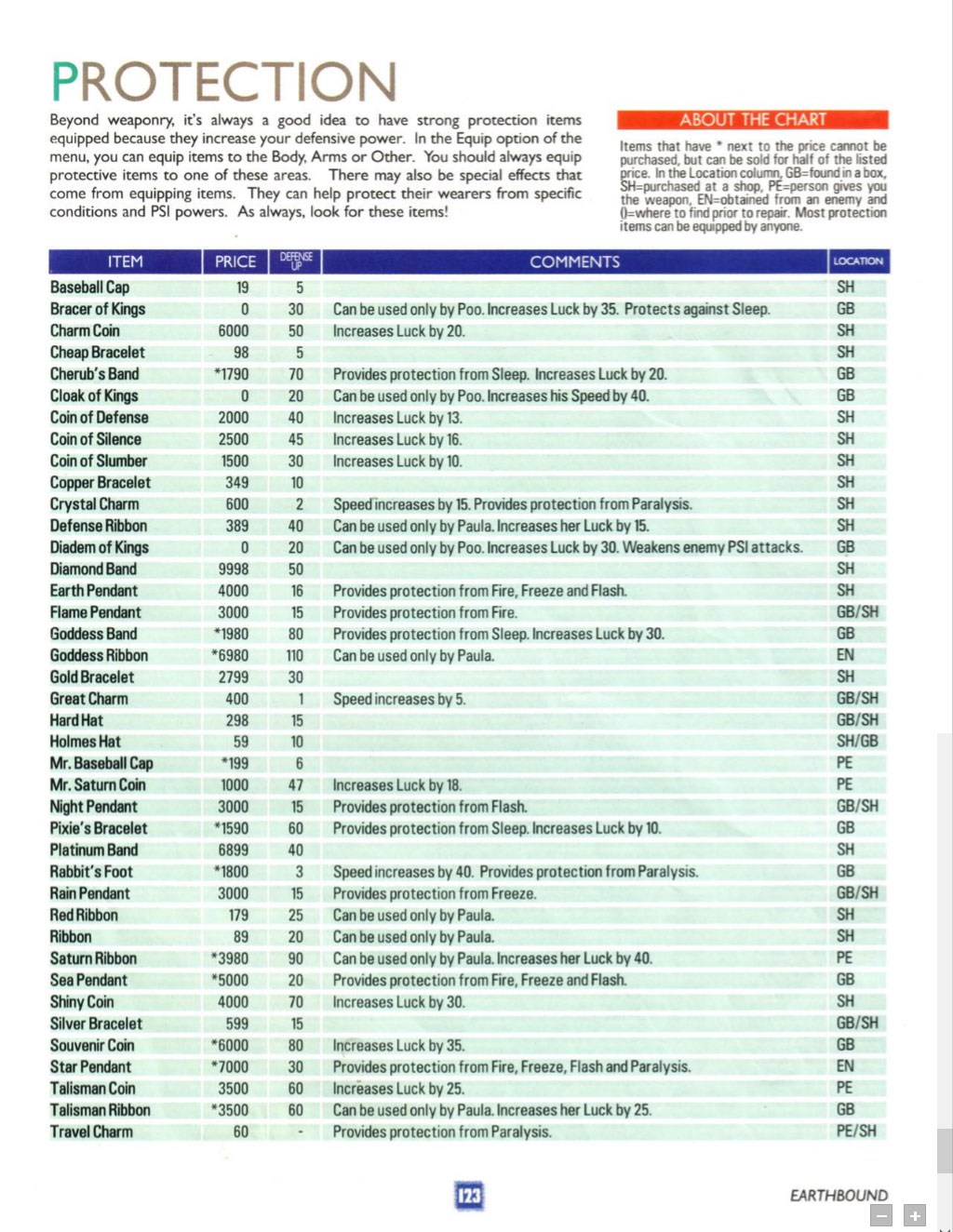 Power-Downs | (There are instances where the heroes and heroine may be affected detrimentally by certain items, etc.—like Poo's offense dropping if he is equipped with a Yo-Yo.) | ||||||